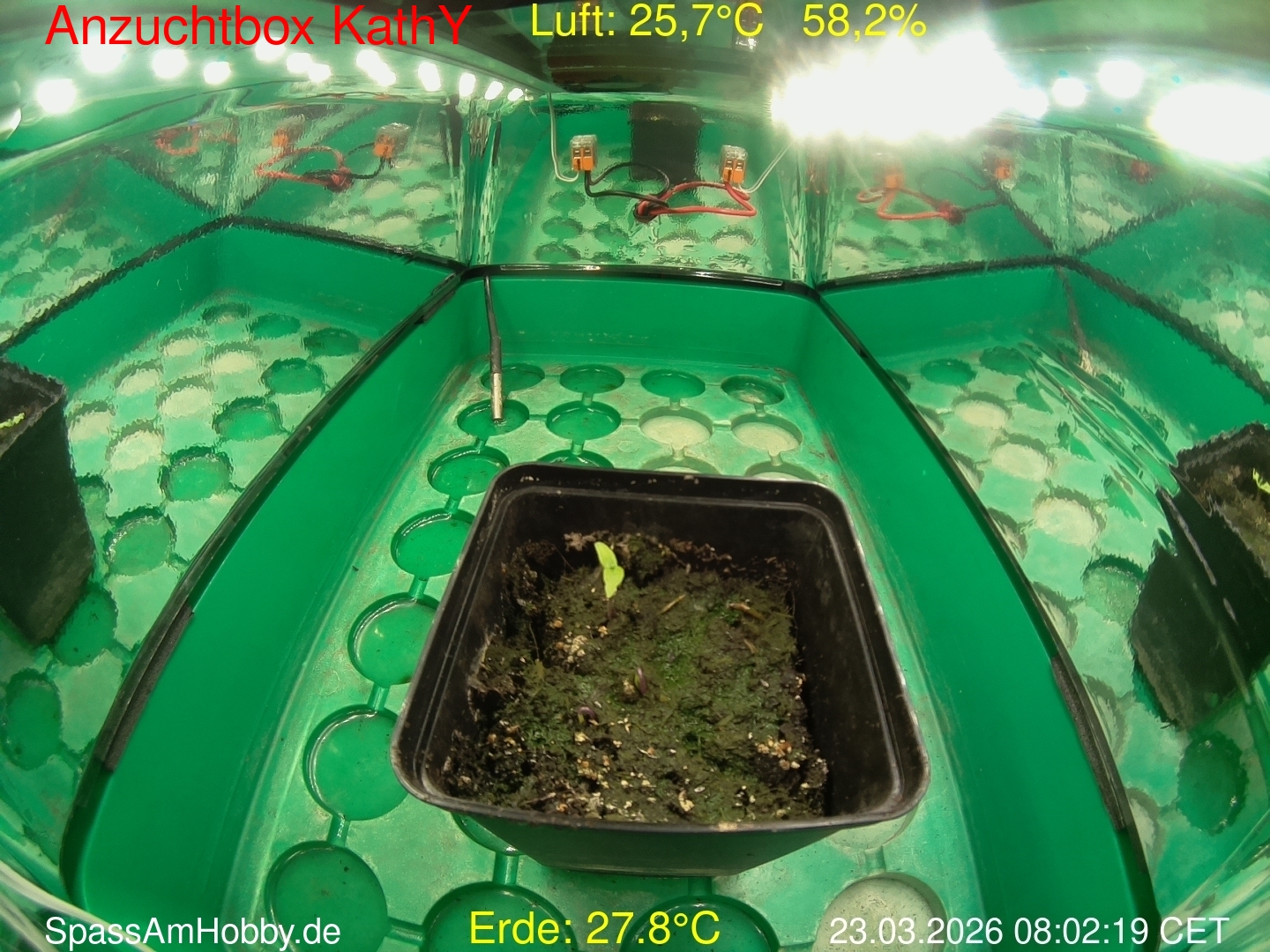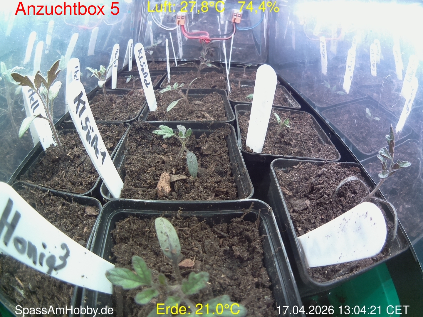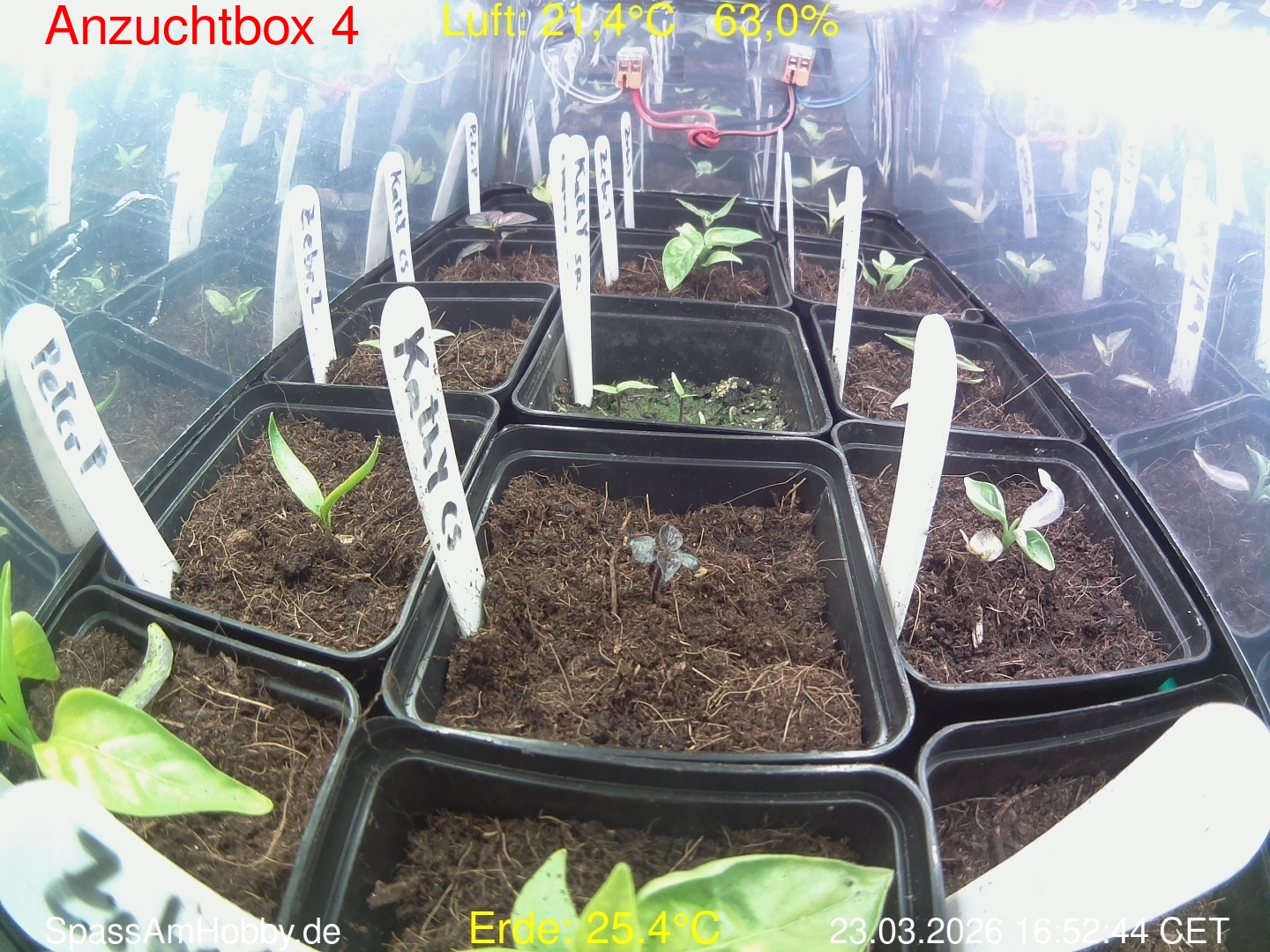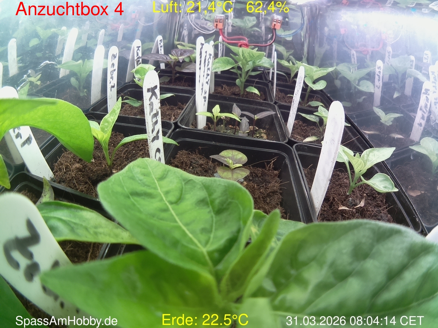 Die WebCam wurde am 31.03.2026 abgeschaltet und die Keimlinge umsortiert. Sie stehen nun im Chiliregal, aber ohne WebCam.